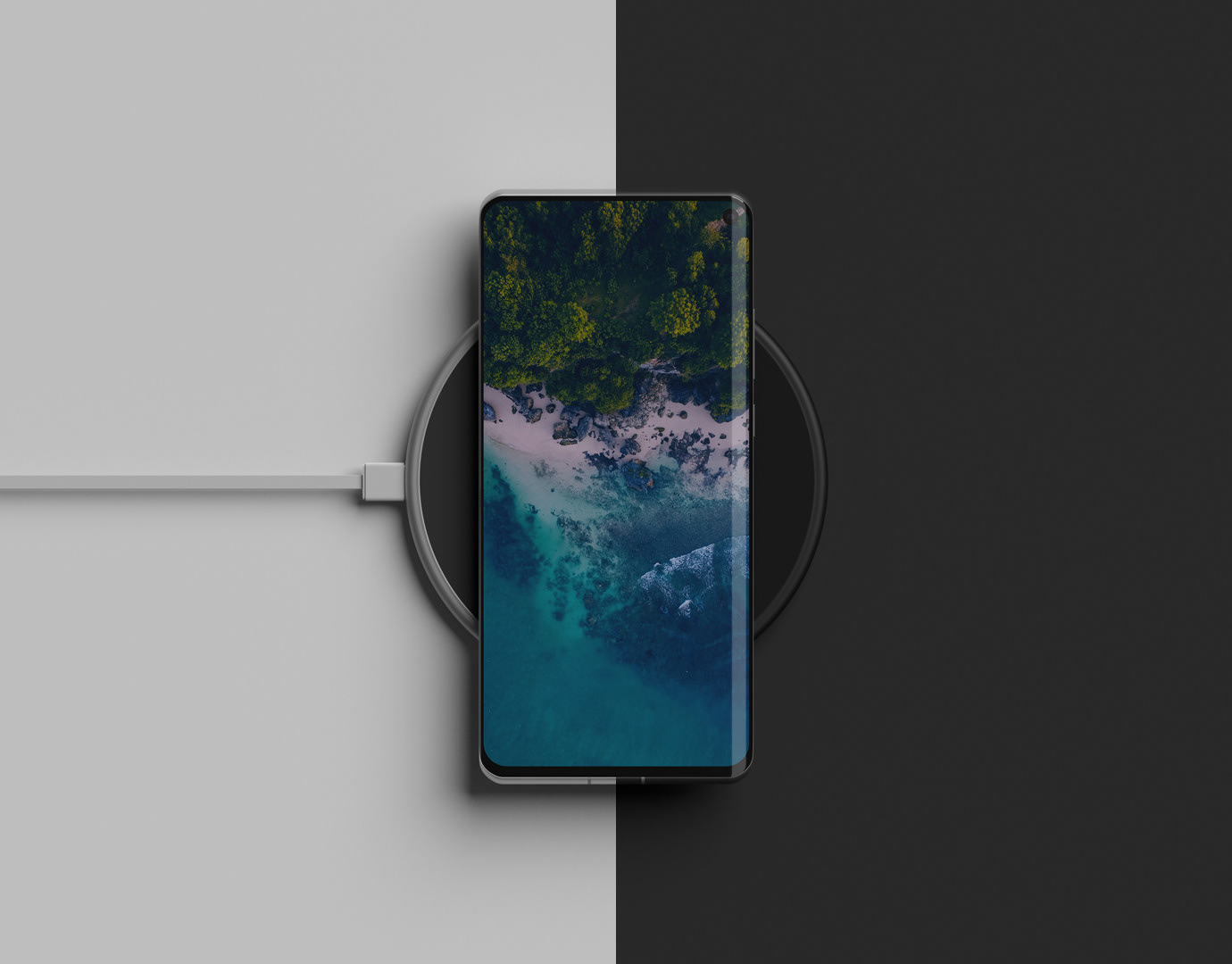 Smartphone on a Wireless Charger Mockup