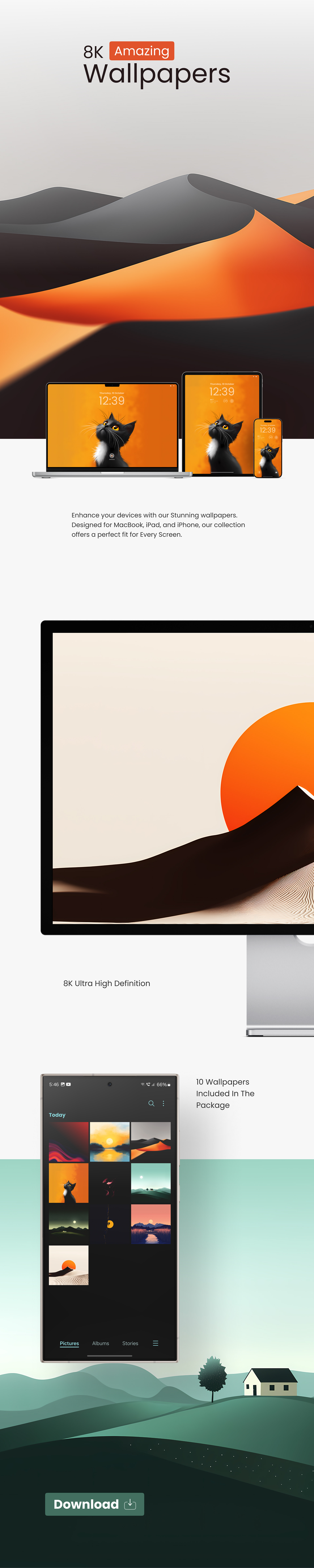 Transform your screens with 10 stunning desktop wallpapers, designed to seamlessly fit any device—MacBook, iPad, iPhone, and more! Elevate your workspace with these eye-catching, high-resolution designs that combine style and versatility. Perfect for adding a fresh, aesthetic touch to your digital life.