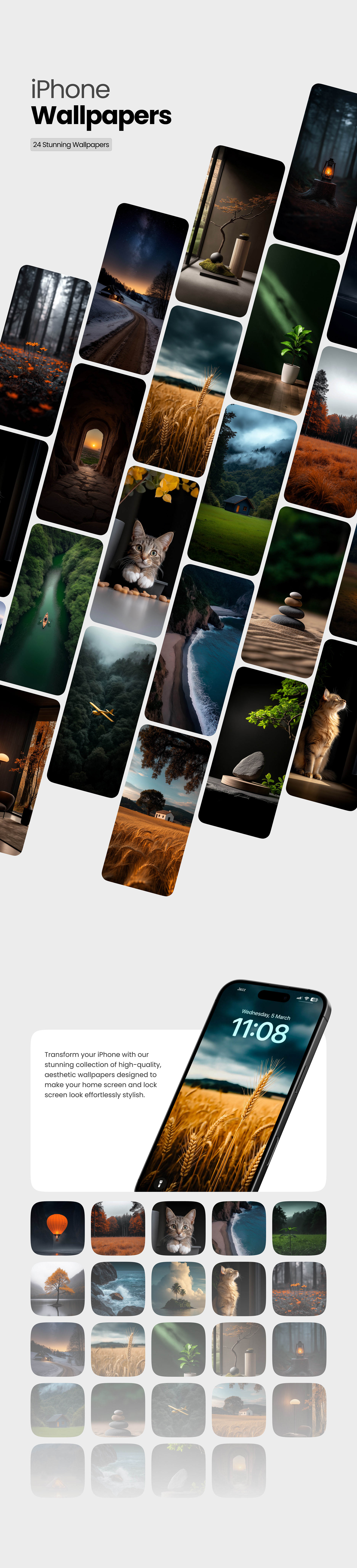 Transform your iPhone with our stunning collection of high-quality, aesthetic wallpapers designed to make your home screen and lock screen look effortlessly stylish. From minimalist designs to vibrant abstracts, each wallpaper is crafted to complement your iPhone's display beautifully.